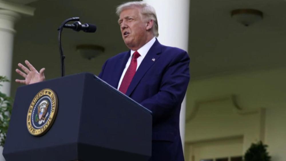 Trump gives subdued, rambling campaign-style speech in Rose Garden /
