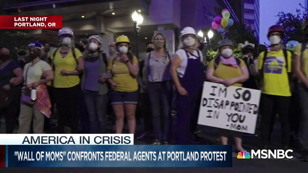‘Wall of Moms’ shields protesters from federal agents in Portland