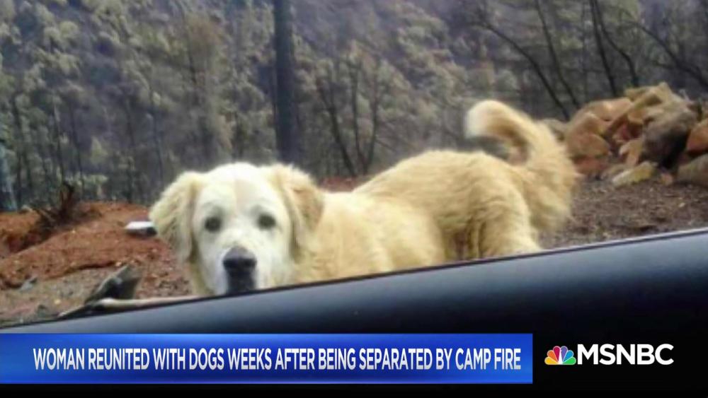 Woman reunited with dogs weeks after being separated by Camp Fire /