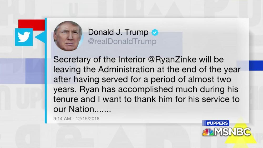 BREAKING NEWS: Secretary of Interior Ryan Zinke leaving Trump Administration