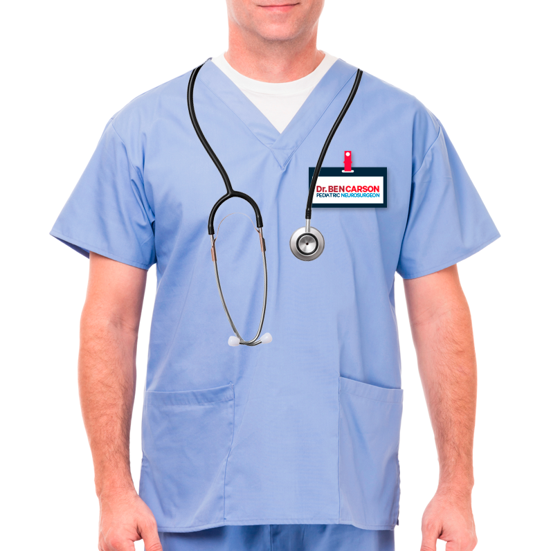 If dressing up as a politician is too main stream for you, Dr. Ben Carson has you covered with the perfect outsider costume. The “Official Ben Carson Scrub Top and Stethoscope Halloween costume” is available for $35.00 on his campaign website.