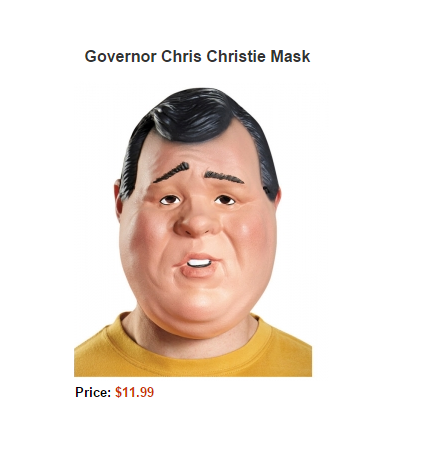 With a half-zip fleece jacket and a “tell it like it is” attitude, you can transform yourself into New Jersey Governor Chris Christie with this mask for only $11.99.