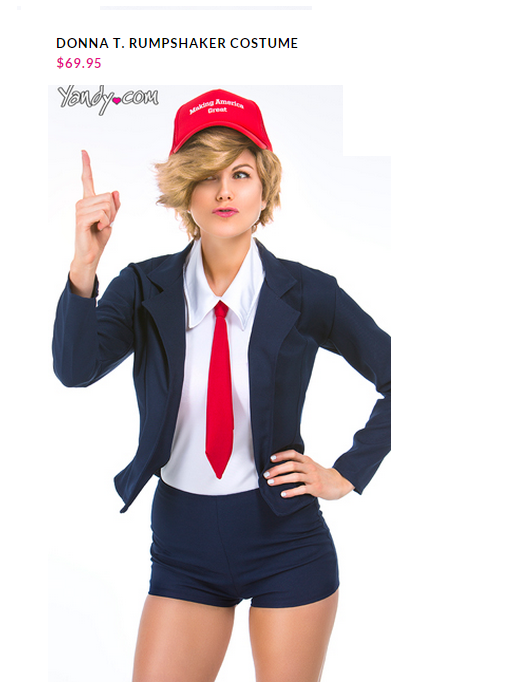 Halloween spirit is HUGE this year thanks to the “sexy” Donald Trump costume ($69.95). And if anyone gets upset, just remind them that you’re leading in the polls and that you have billions of dollars!