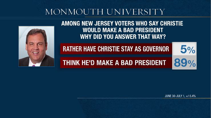 The poll followed up with those who said Christie wouldn’t make a good president and only 5% said it’s because they would rather him stay on as governor.