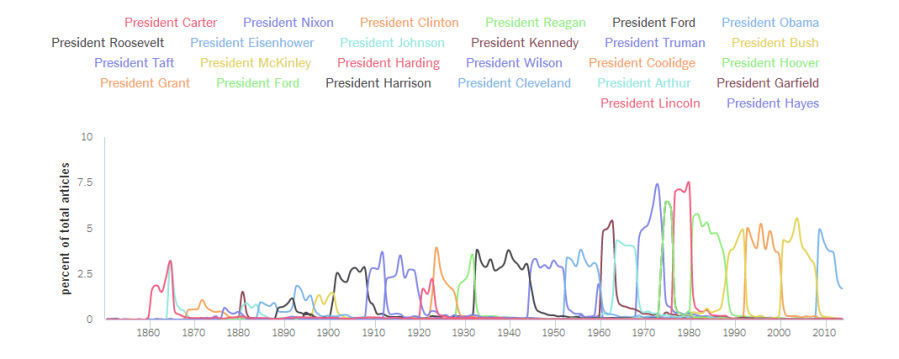Surprising? The Washington Post came up with the numbers using a new tool The New York Times developed to count how many times a term is mentioned in their publication. The graph below shows the research mapped out by The Washington Post. Unfortunately, it turns out Rutherford B. Hayes was the least mentioned in 1977.