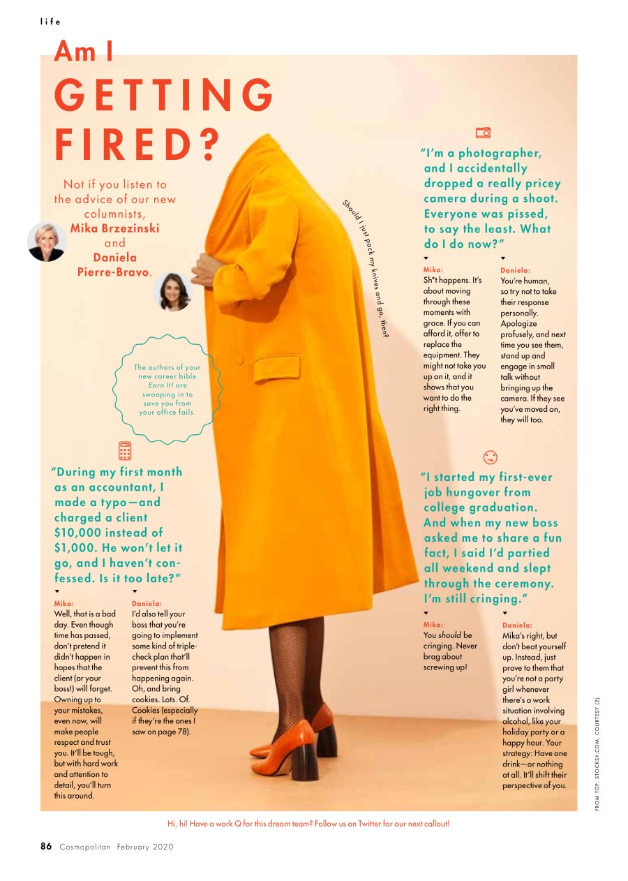 Mika Brzezinski and Daniela Pierre-Bravo wrote their book “Earn It!” to help women in their 20s and beyond grow their career. Now, they have a new space to reach this audience further with the launch of their Cosmopolitan column, “Am I Getting Fired?”