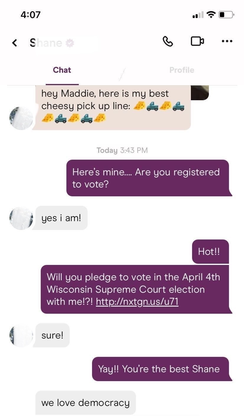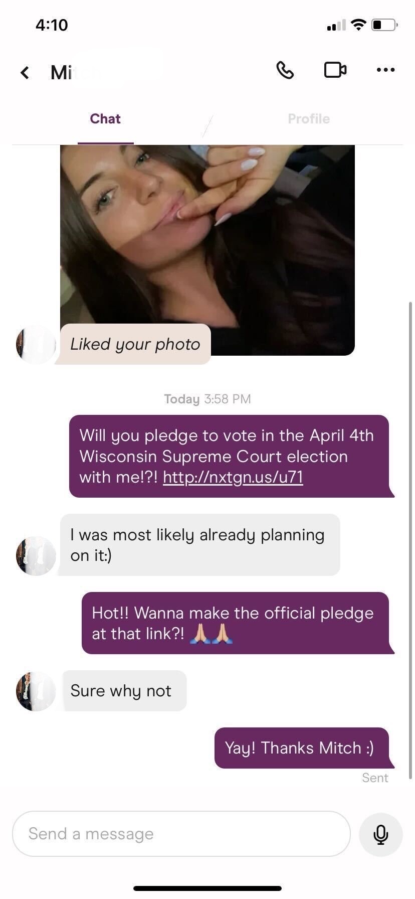 In the lead up to this week's election in Wisconsin, NextGen America volunteers across the country curated their dating profiles and made contact with over 500 potential voters. Cesar Okada / Getty Images/iStockphoto