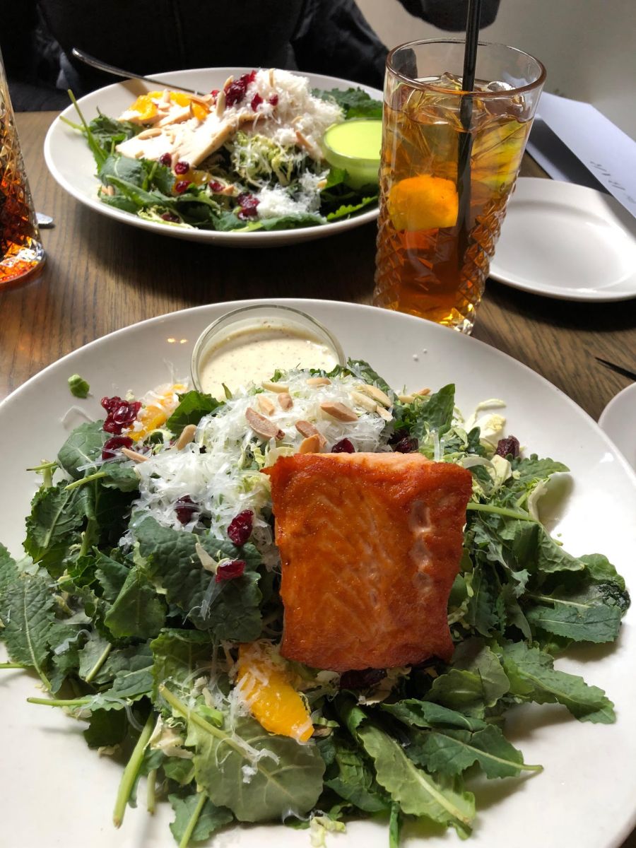 This was a “working lunch” for me. During these types of meetings, I’ll always choose something I really enjoy and don’t prepare that often at home. I love grilled salmon (but don’t have access to a grill at home) so this meal was a real treat. This dish didn’t come with a potato or rice, so I added a crusty sourdough roll for a portion-controlled starchy carbohydrate, which I ate before I took the picture!