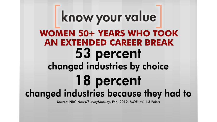 Know Your Value founder Mika Brzezinski recently spoke about the nationwide survey, which 11,000 women and men participated in, with Diane Flynn, CEO of ReBoot Accel, a career re-entry program. Also joining them were Ginny Brzezinski co-author of the upcoming book “Comeback Careers: Rethink, Refresh and Reinvent Your Success — At 40, 50 and Beyond” and Lesley Jane Seymour, former magazine editor and founder of women’s business platform Covey Club.