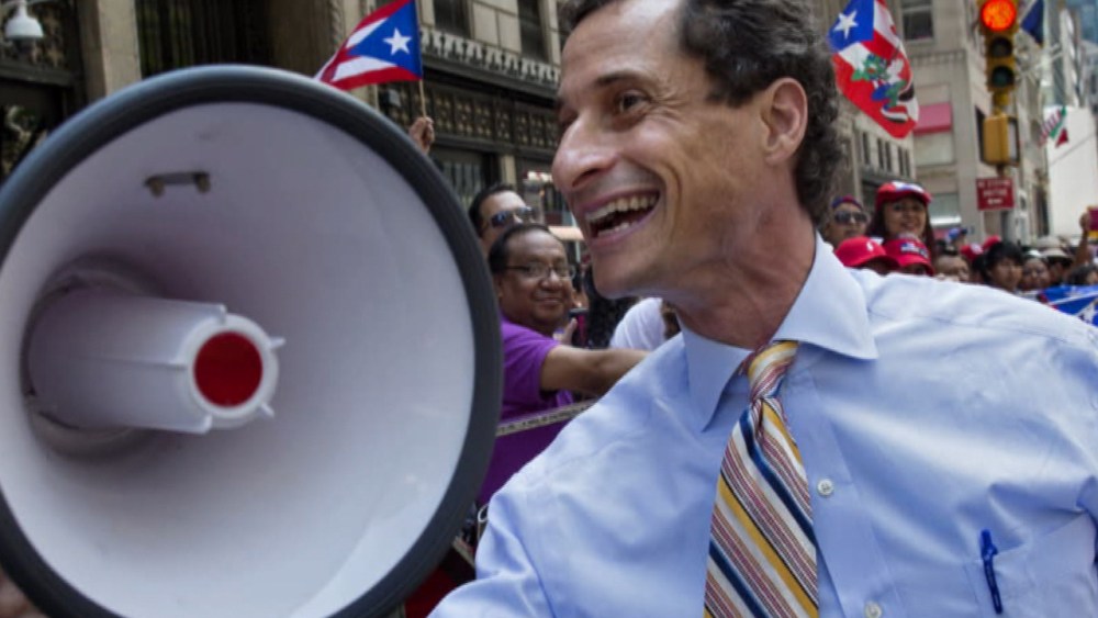 Anthony Weiner chides woman for gay slur, but was it for the cameras?