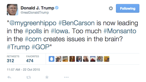 Trump, on the other hand, gained notoriety among the presidential field in 2015 for his active use of Twitter, frequently publishing off-the-cuff missives that made headlines and sent his staff scrambling to perform damage control. Trump’s tweets in 2015 often had the power to become their own news stories, though it’s unclear how many he writes personally; on occasion, he has blamed staffers or interns for provocative tweets. In 2015, Trump deleted at least five controversial tweets that got him in hot water, including: a sexist tweet about Clinton in April; a tweet in July about Jeb Bush’s Mexican-American wife, Columba Bush; a tweet about September 11th; a tweet in October that insulted Iowa voters; and a tweet in November linking Jeb Bush to Nazi imagery.