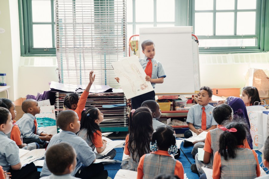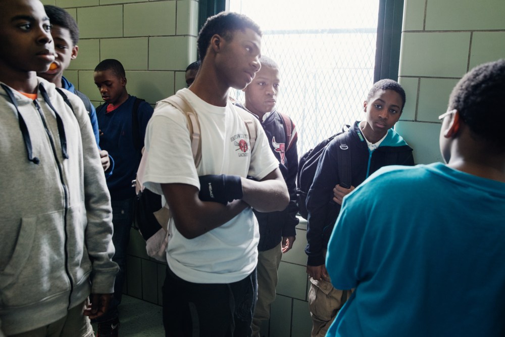Members of PS 149's Lacrosse team line up for study hall after lunch on April 11, 2104.Photo by Thomas Prior for MSNBC