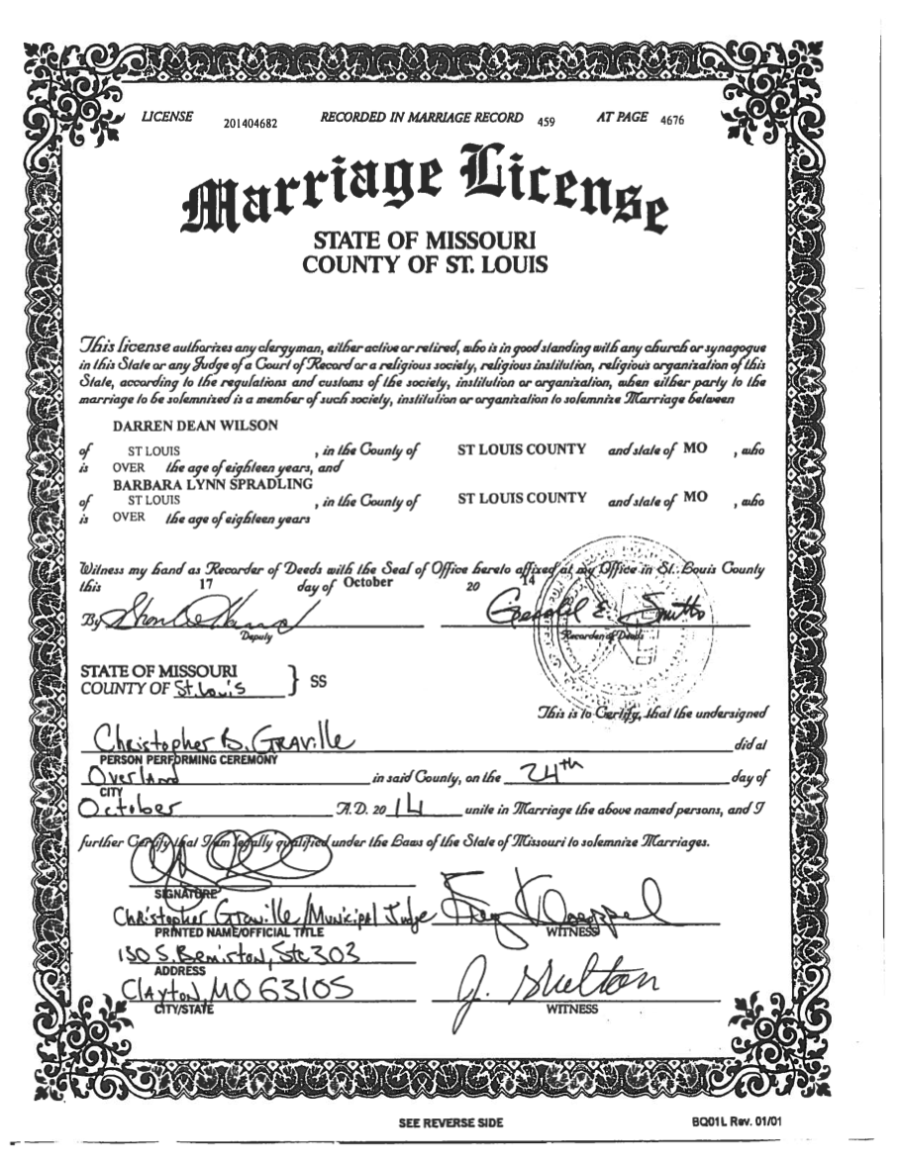 The Ferguson police officer involved in the shooting death of 18-year-old Michael Brown was quietly married last month.