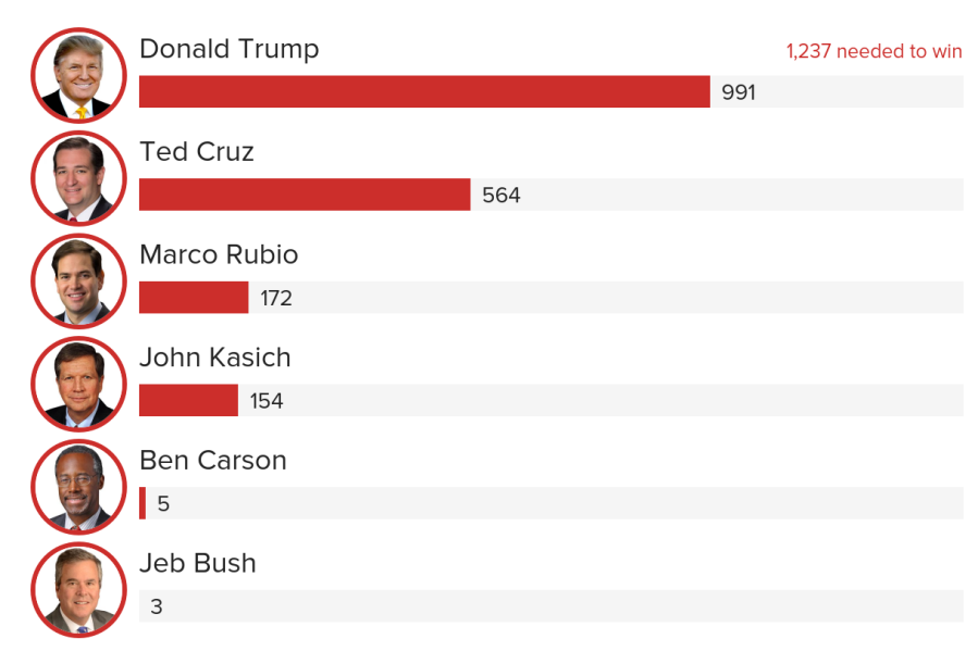 Trump holds a 427-delegate lead over Cruz