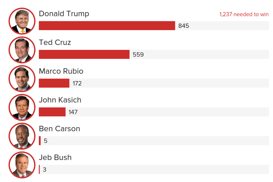 Trump needs to win 57% of remaining delegates to reach 1,237 magic number
