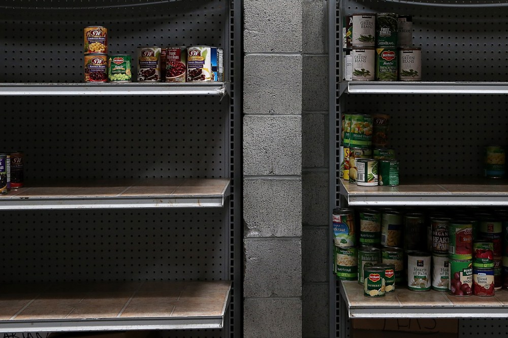 Shelves of canned foods sit partially empty at the SF-Marin Food Bank on May 1, 2014 in San Francisco.Getty Images