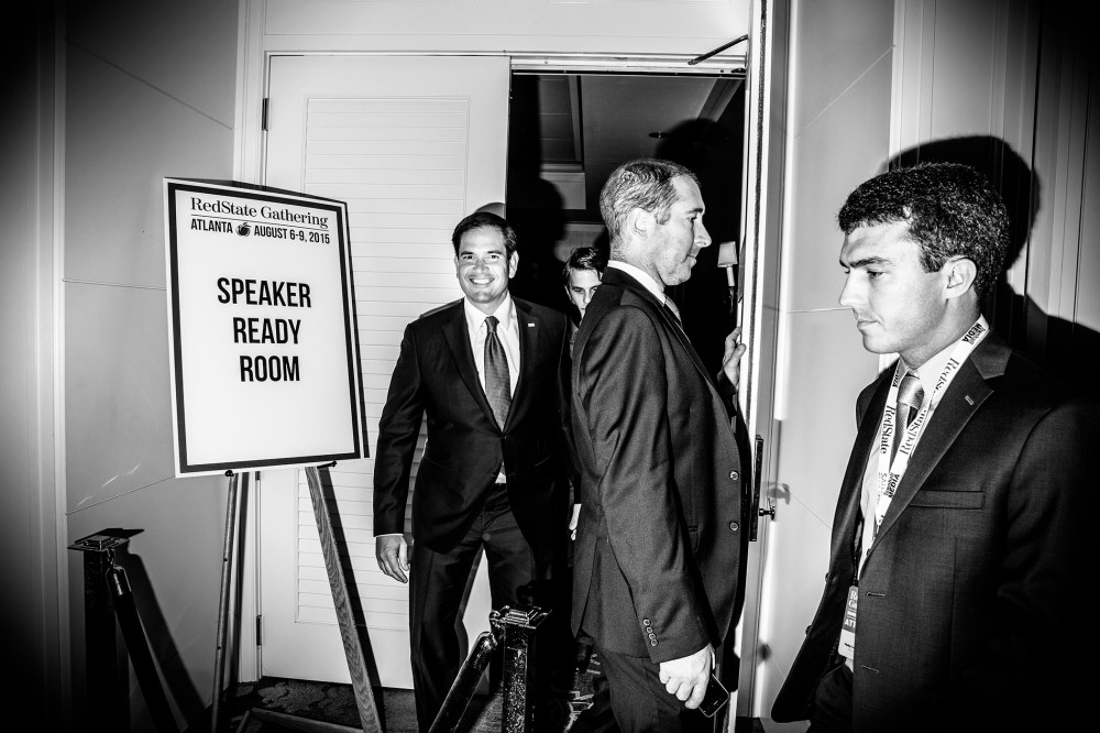 Sen. Marco Rubio leaves the green room at the RedState Gathering in Atlanta, Ga., Aug. 7, 2015.mark peterson/reduxpictures 2015