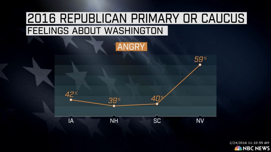 Voters in the fourth contest of the 2016 Republican nomination process are angrier and older than in the prior primaries or caucuses.