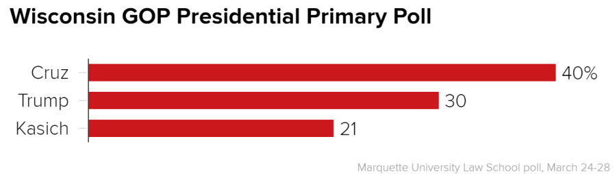 The poll by Marquette University Law School shows Cruz with the support of 40 percent of likely GOP voters in the state, compared to 30 percent for Trump.