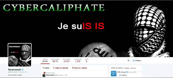 During the hack, the @Newsweek account’s profile picture and banner were changed to images of a masked man and the Black Standard flag, along with a message “Je su IS IS.” The group tweeted out offensive messages threatening Michelle Obama and praising “cyber jihad.”
