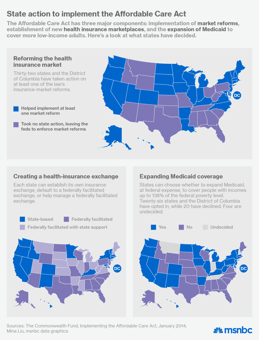 Five states are completely boycotting the Affordable Care Act. Most others are mixing and matching their favorite provisions. Here's a national rundown.