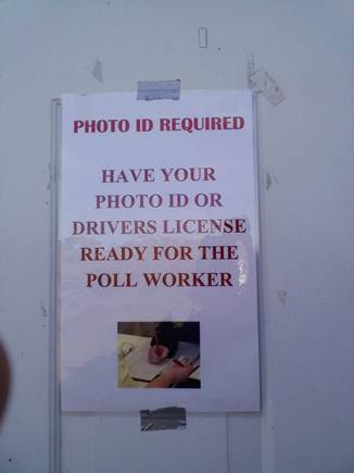 Silas Wonderling voted in Rose Township, Pa. this afternoon. He told msnbc he declined to show ID and was able to vote without it. But he said there were posted signs, as pictured here, saying it was required (see photo, at right).
