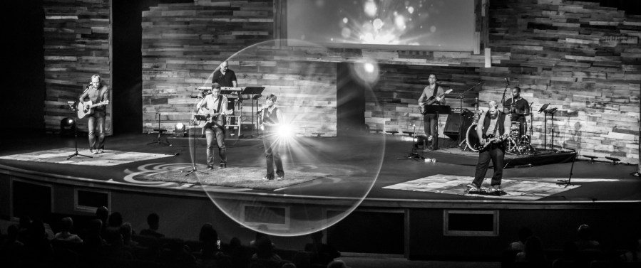 But this isn’t a rock concert, an A-list venue or tourist attraction off the strip of Sin City – for thousands of Christians each Sunday, this is simply what church services look like.