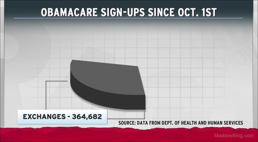 When it comes to signing up for health insurance through the new law, early data show a wide gap between the red and blue states. Last night on the show (video below), producer Mike made a chart based on statistics from this new AP report: