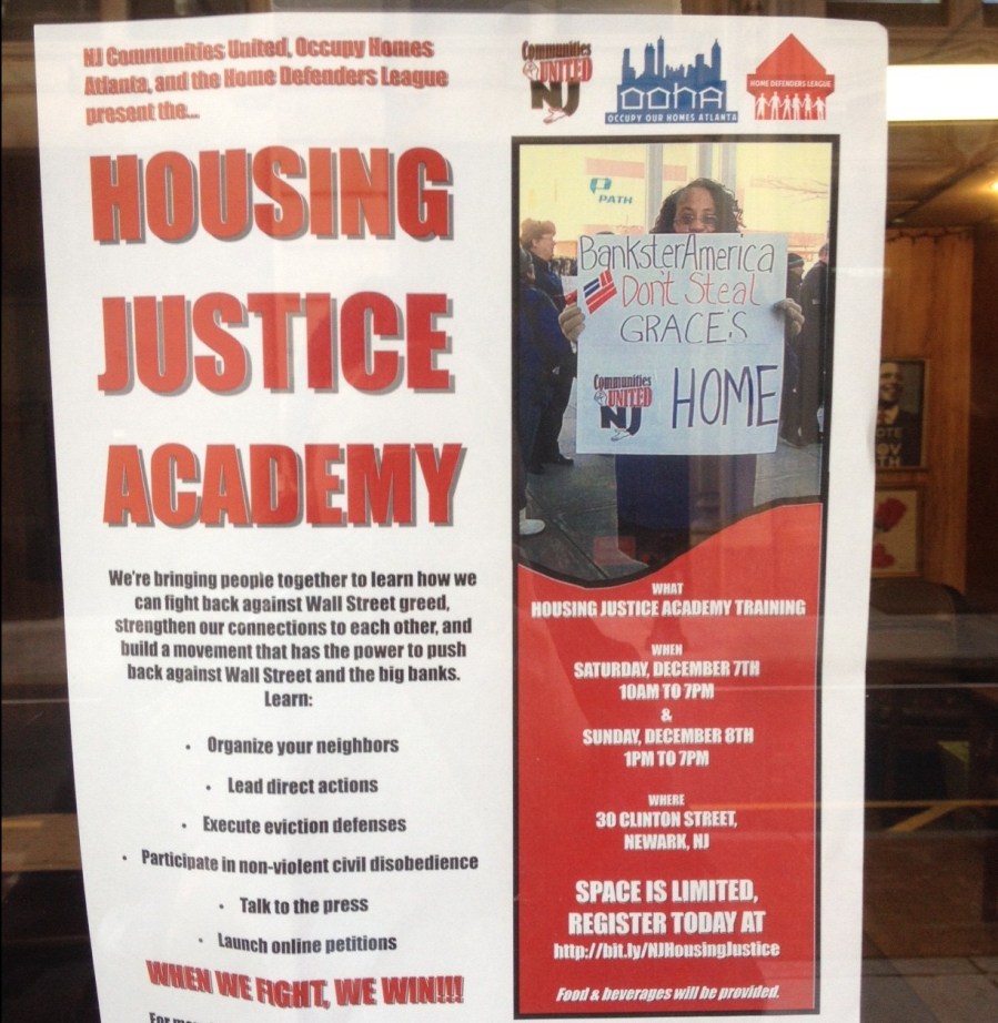 People gather at a Saturday morning meeting hosted by New jersey Communities United in Newark, NJ on December 7, 2013.