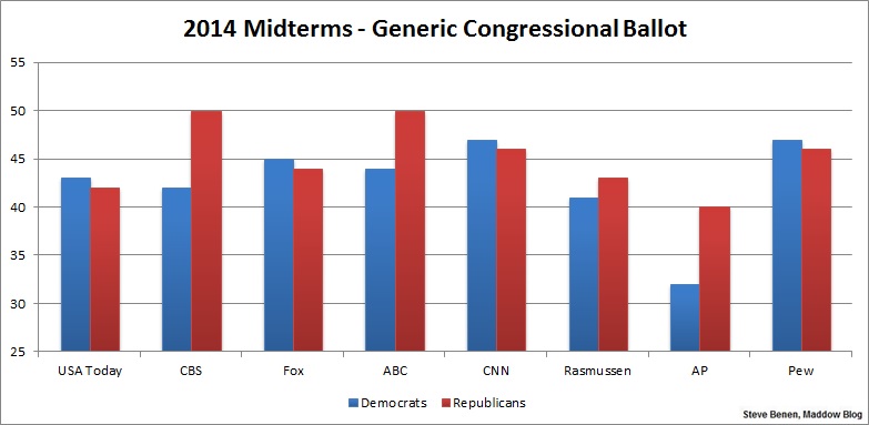 How many national polls showed Democrats with any kind of generic-ballot lead at this point four years ago? Zero.