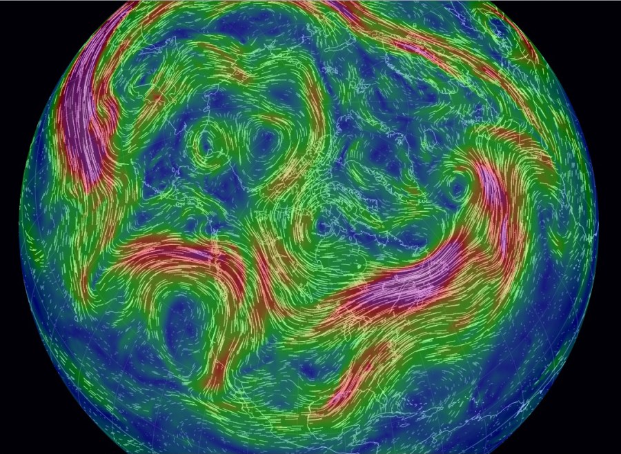 A few of the explanations I read talked about this week’s cold being the result of a weakening of the vortex, possibly caused by heat from the summer ice melt. Would that stripe of slower wind speed breaking the loop over the Midwest be representative of that weakening?