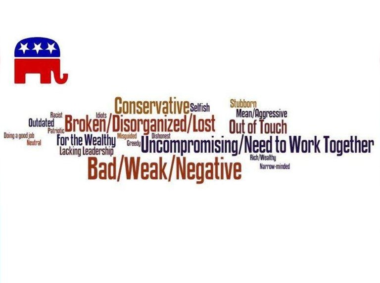When asked to describe the Republican party with one word or phrase, the most common response was some variation of “bad”, “weak” or “negative”. The party was labeled as “uncompromising”, “broken”, “lost” and “out of touch”.
