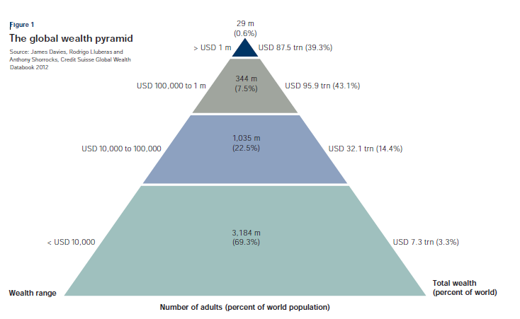 Here’s the bottom line: The Global Wealth Report gives us a taste for just how wealthy Americans are, in comparison with the rest of the world. But unless you became one of those new millionaires last year, the report also reveals the vast difference in wealth between the top tiers of the pyramid and the rest of us.
