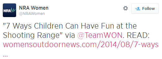 Just two days after an Arizona shooting range instructor was accidentally shot and killed by a 9-year-old who was learning to use an Uzi, the NRA Women’s Twitter account sent out a tweet with suggestions for making a trip to the shooting range more fun for kids.