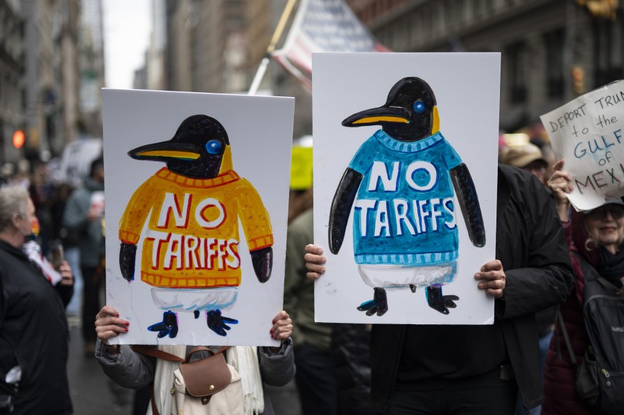 Thousands of demonstrators took part in a series of nationwide “Hands Off” protests against the Trump administration Saturday, with many articulating their ire toward the 47th president’s policies using pithy slogans on handmade signs.
