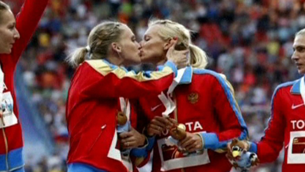 Russian athletes kiss in spite of country’s anti-gay propaganda law